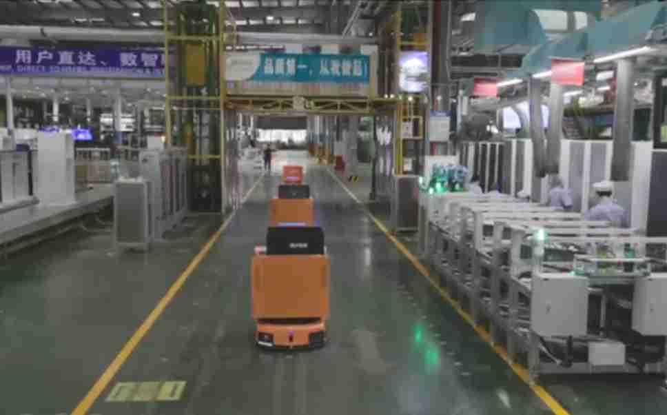 为车载冰箱物流配送打造的智能解决方案,,,,包含产中物流通过潜伏举升AMR搬运至线边,,,,产后成品物流智能仓储,,,流程包含产中物流智能齐套入库,,,,线边安灯叫料AMR智能配送至线边,,,成品入库、、、、出库,,,通过无人堆高车机器人,,智能仓储管理替代人工作业管理,,,实现更高存储、、、更高效率、、、更具柔性化的解决方案。。
