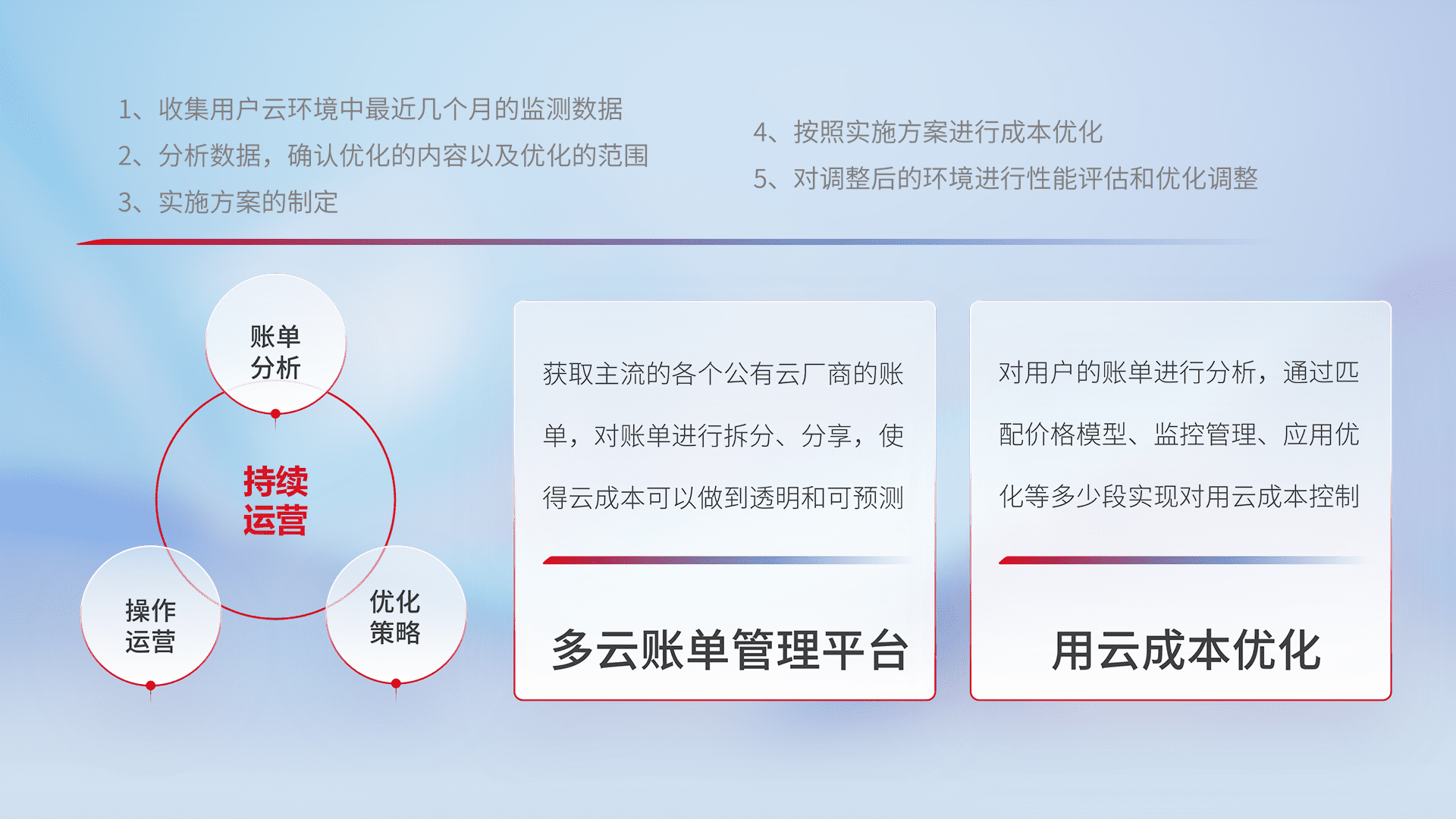 监控业务系统资源开销,,,,对资源的消耗精确计量,,,实现费用的透明化管理,,,不断提升资源使用率,,调整资源购买方式,,,,降低资源费用成本,,用云成本可预测、、用云费用可优化,,,云资源配额有据可依。。。